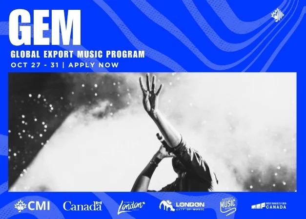 GEM is presented in partnership by Canada’s Music Incubator and Music Managers Forum Canada, with the participation of the Government of Canada, and supported by Tourism London, the City of London, and the London Music Office.