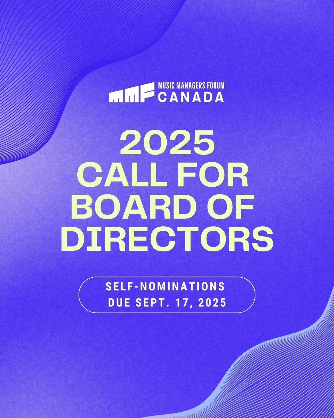 Nominations are now open until September 17 for the 2025 MMF Canada Board of Directors. We welcome self-nominations from all eligible applicants, including managers and self-managed artists of all experience levels, from across the country.